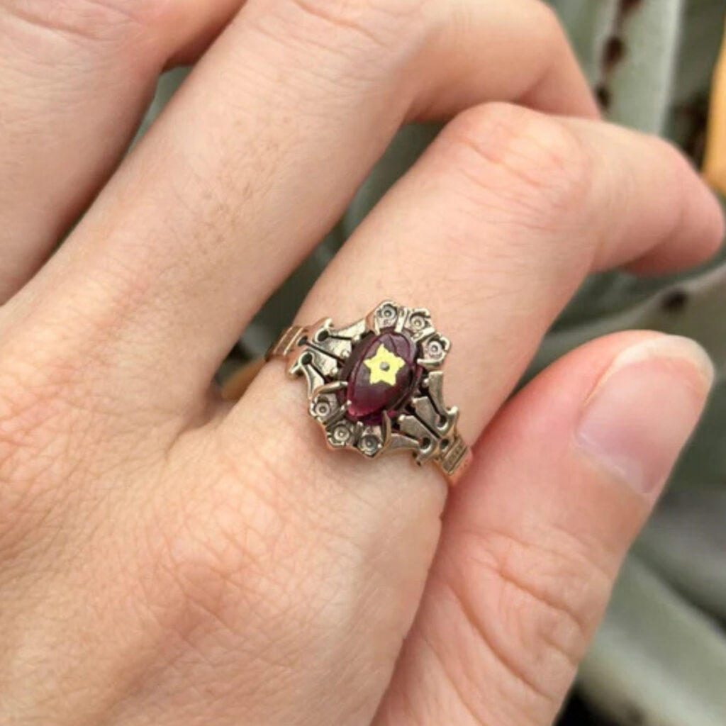 This unique ring features a square shank for a modern touch, while the six-prong setting securely holds the stone—delicate yet strong, offering both beauty and durability. Whether it’s for a wedding, anniversary, or a meaningful graduation gift, this piece blends vintage charm with classic sophistication.