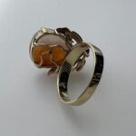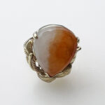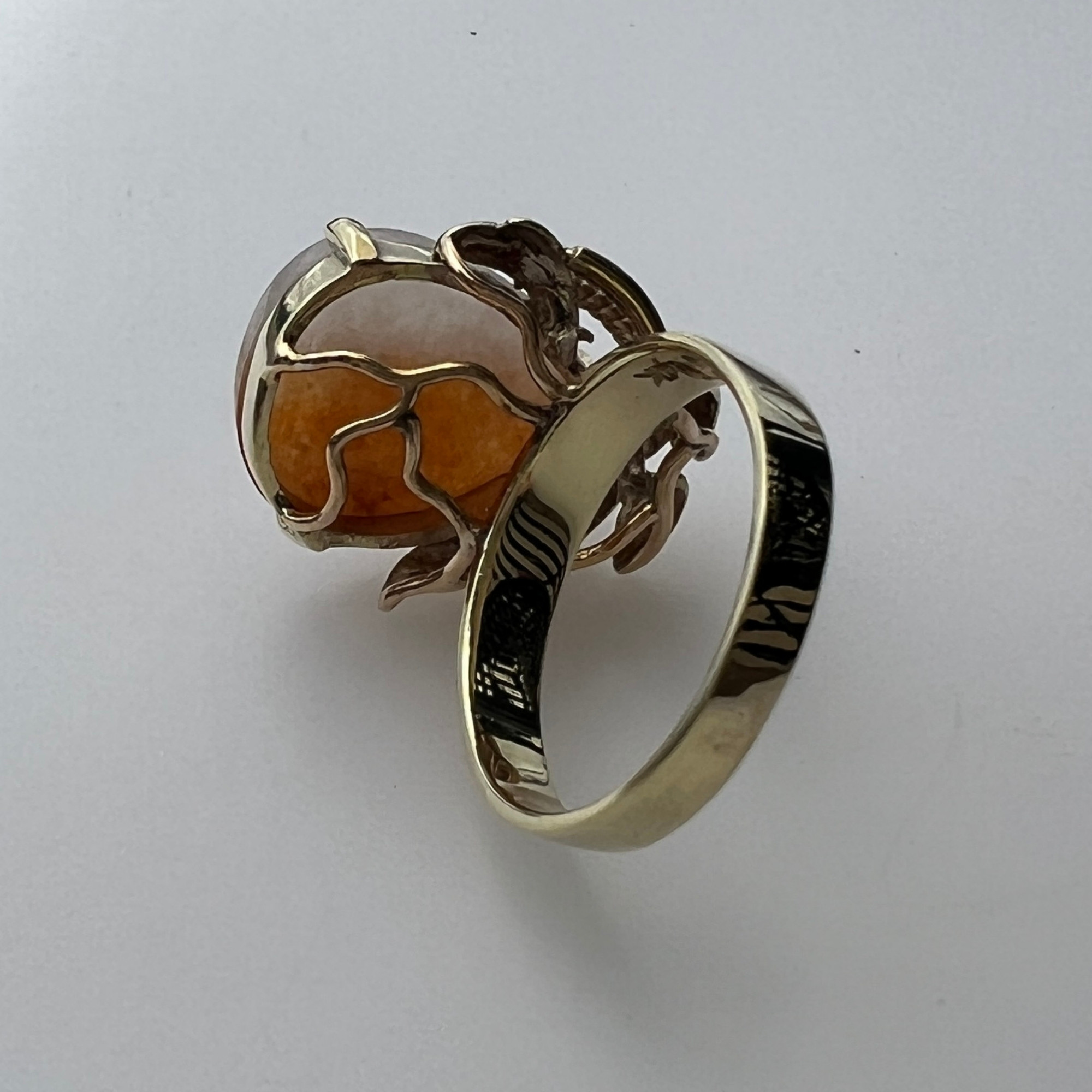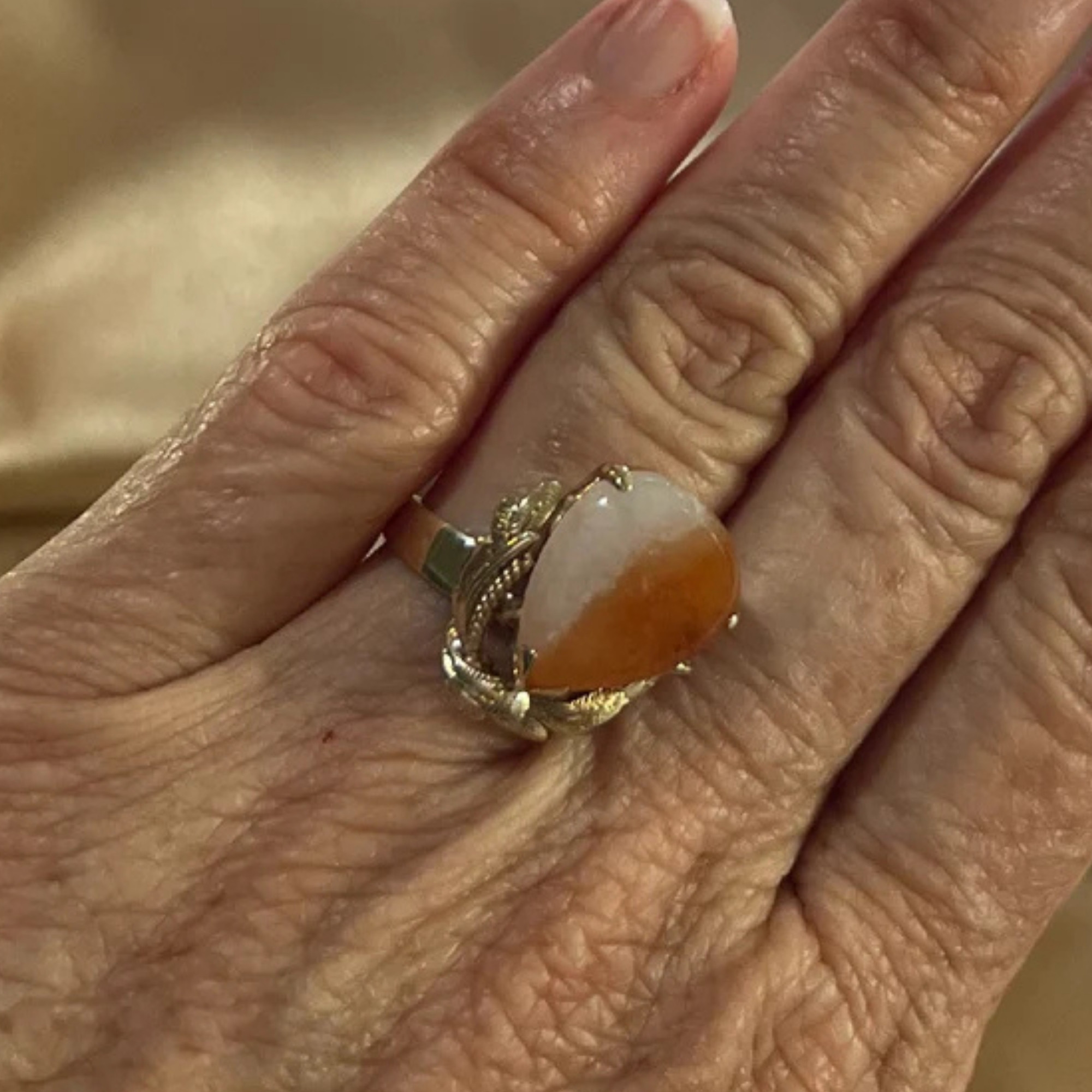14k Gold Orange & White Jade Ring Size 6 – Natural 2-Tone Jade Statement Ring, Vintage Solid Gold Ring for Women ~ Lot 11