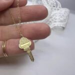Unlock a touch of vintage charm with this beautiful 14K solid yellow gold key pendant. A classic symbol of “the key to my heart,” knowledge, or new beginnings, this key charm offers timeless appeal and sentimental value.