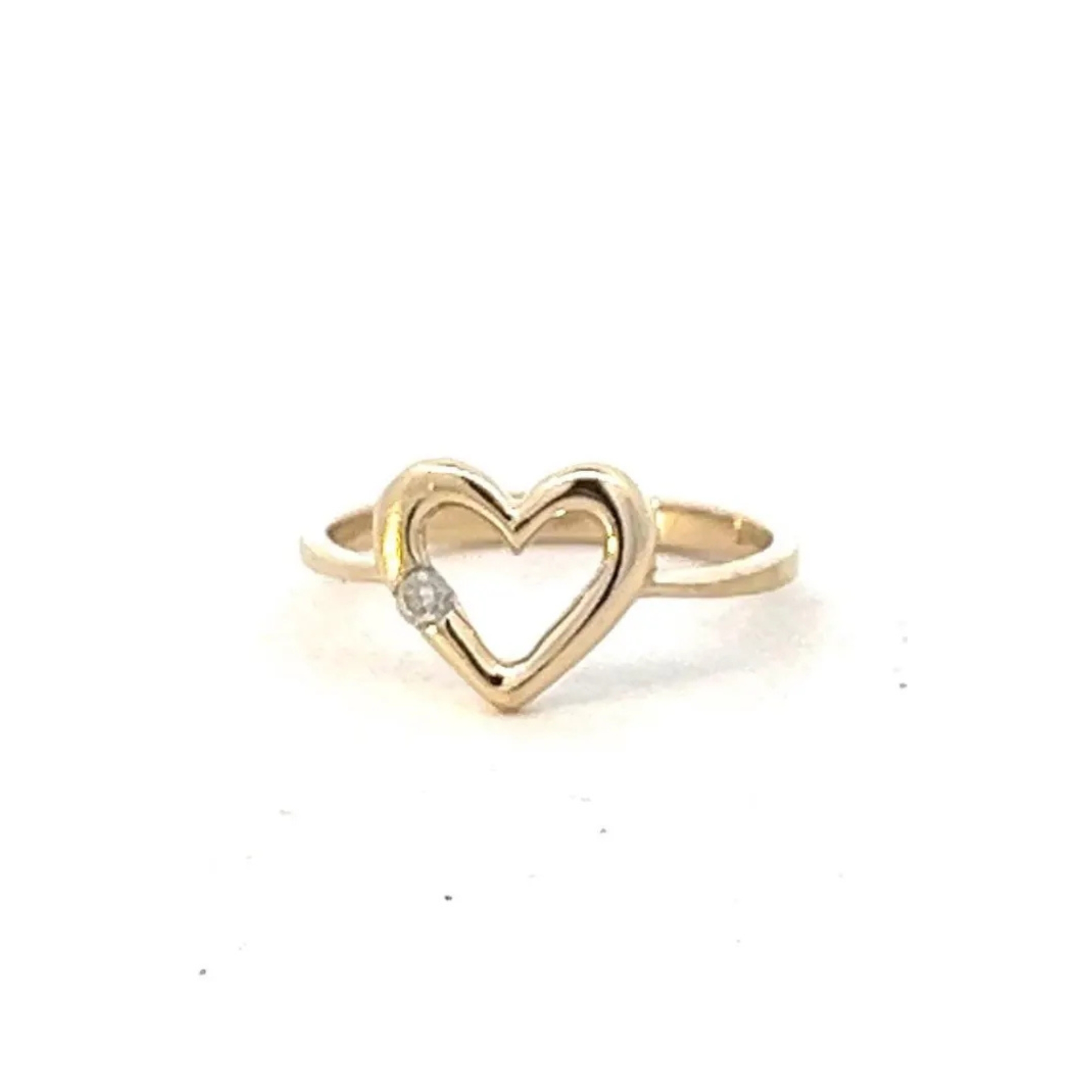 Heart Ring Gold | Vintage 14k Solid Heart Ring with Diamond | Ring Size 6 1/2 | Dainty Purity Ring, April Birthstone Jewelry Lot #300