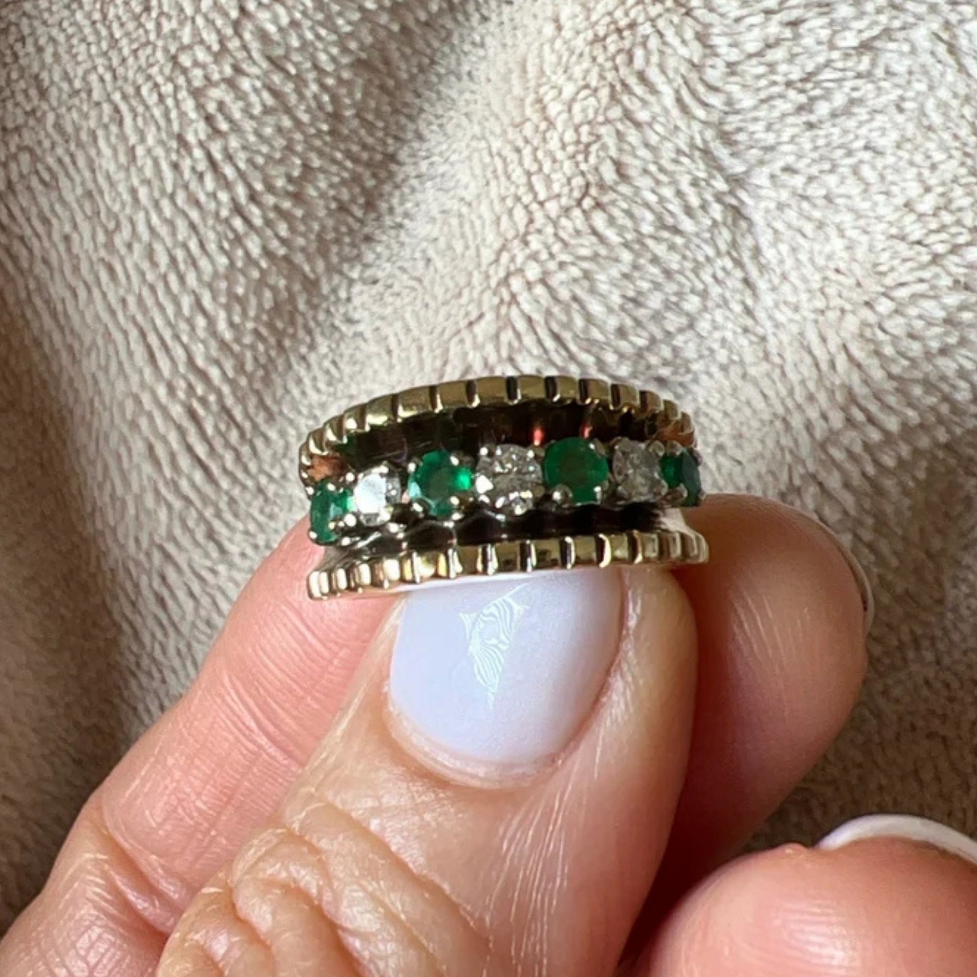 Vintage 14k Gold Emerald & Diamond Cigar Band | Ring Size 3¾ Midi or Pinky Ring | May Birthstone Estate Jewelry Lot 47