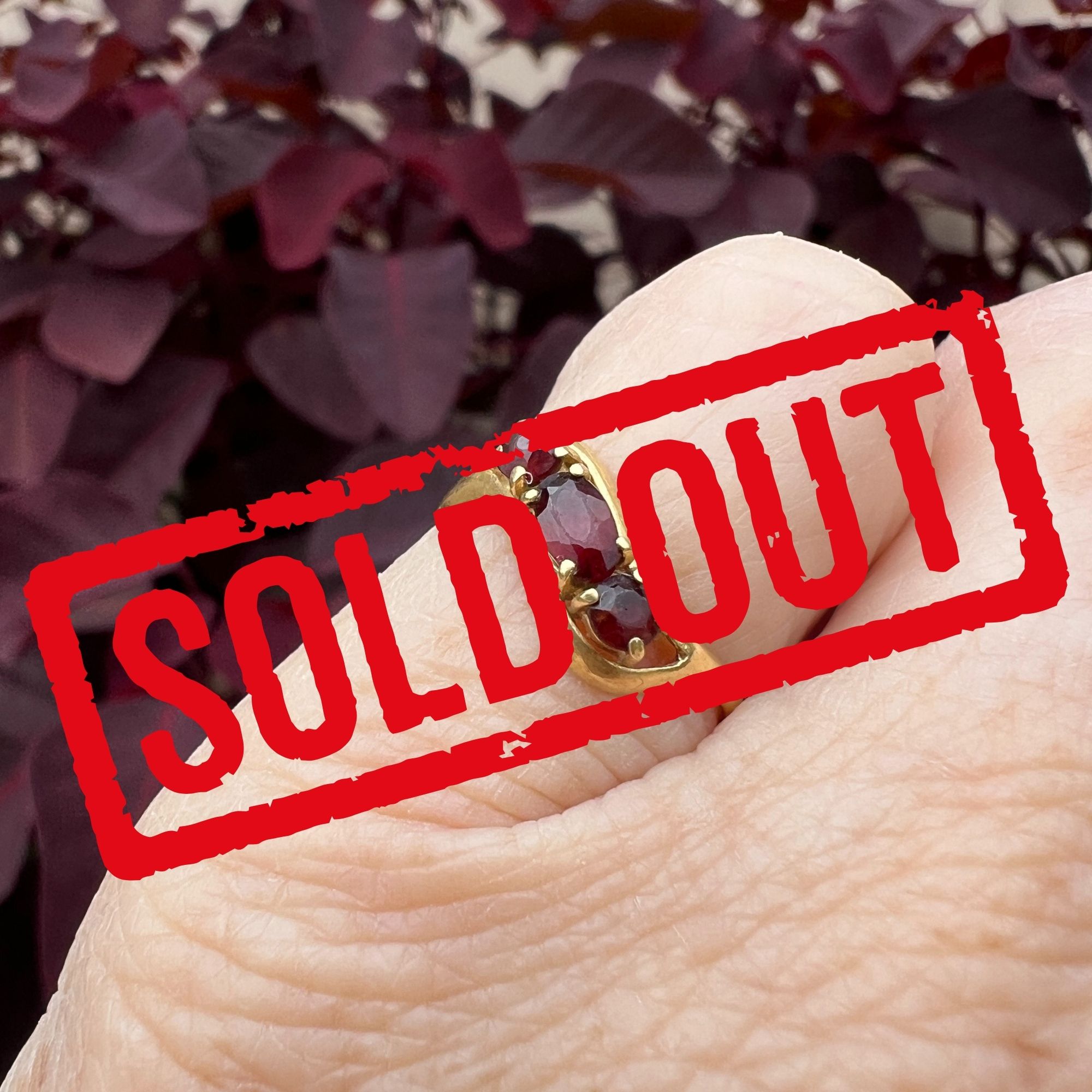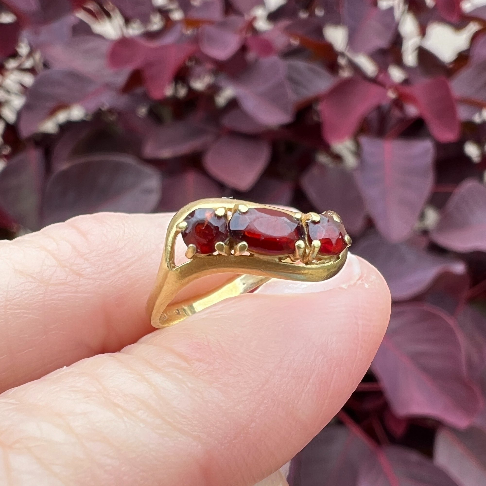 Vintage 18k Garnet Ring Size 4 – Three Stone Low Profile Garnet Band for Women | Retro Pinky Ring ~ Lot
