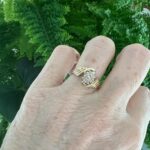 Designed in the 1990s, this ring blends retro glamour with timeless elegance—making it perfect as an anniversary gift, a wedding piece, or simply as a bold “just because” ring. The bypass design adds movement and dimension, while the warm gold enhances the brilliance of the diamonds.