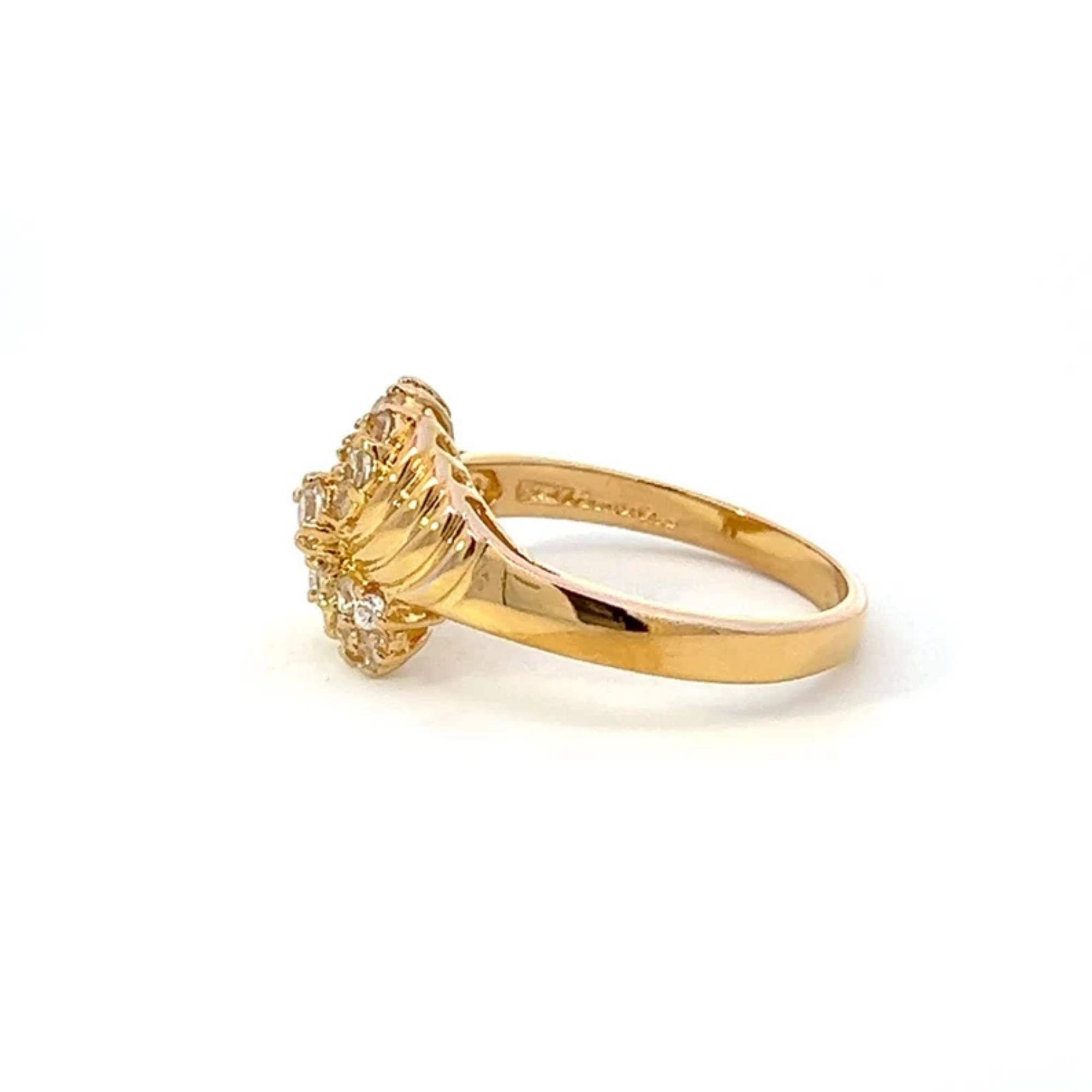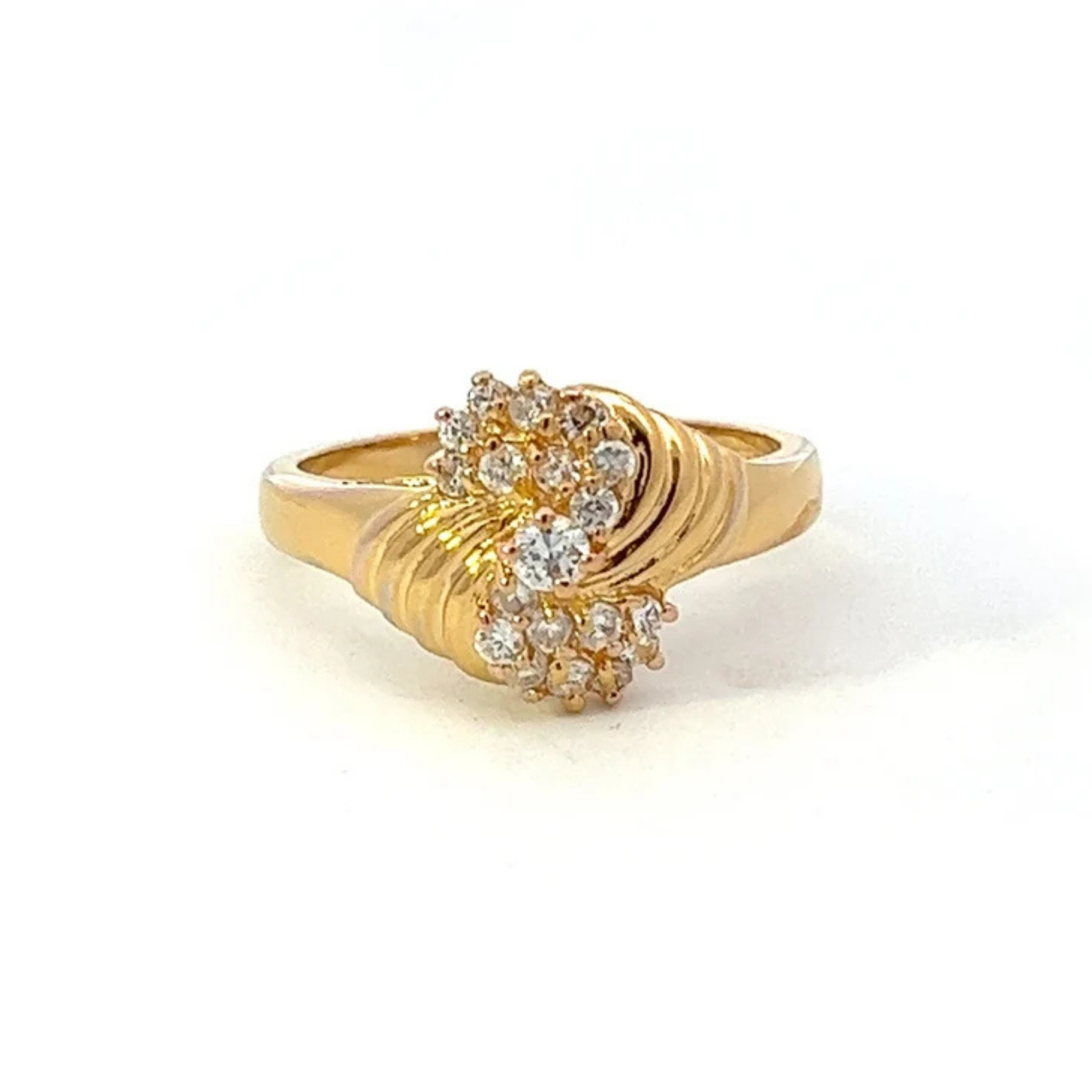 Vintage Diamond Waterfall Ring – 14k Yellow Gold Cluster Bypass Ring | Ribbed Design Cocktail Ring Size 6½ ~ Lot 309