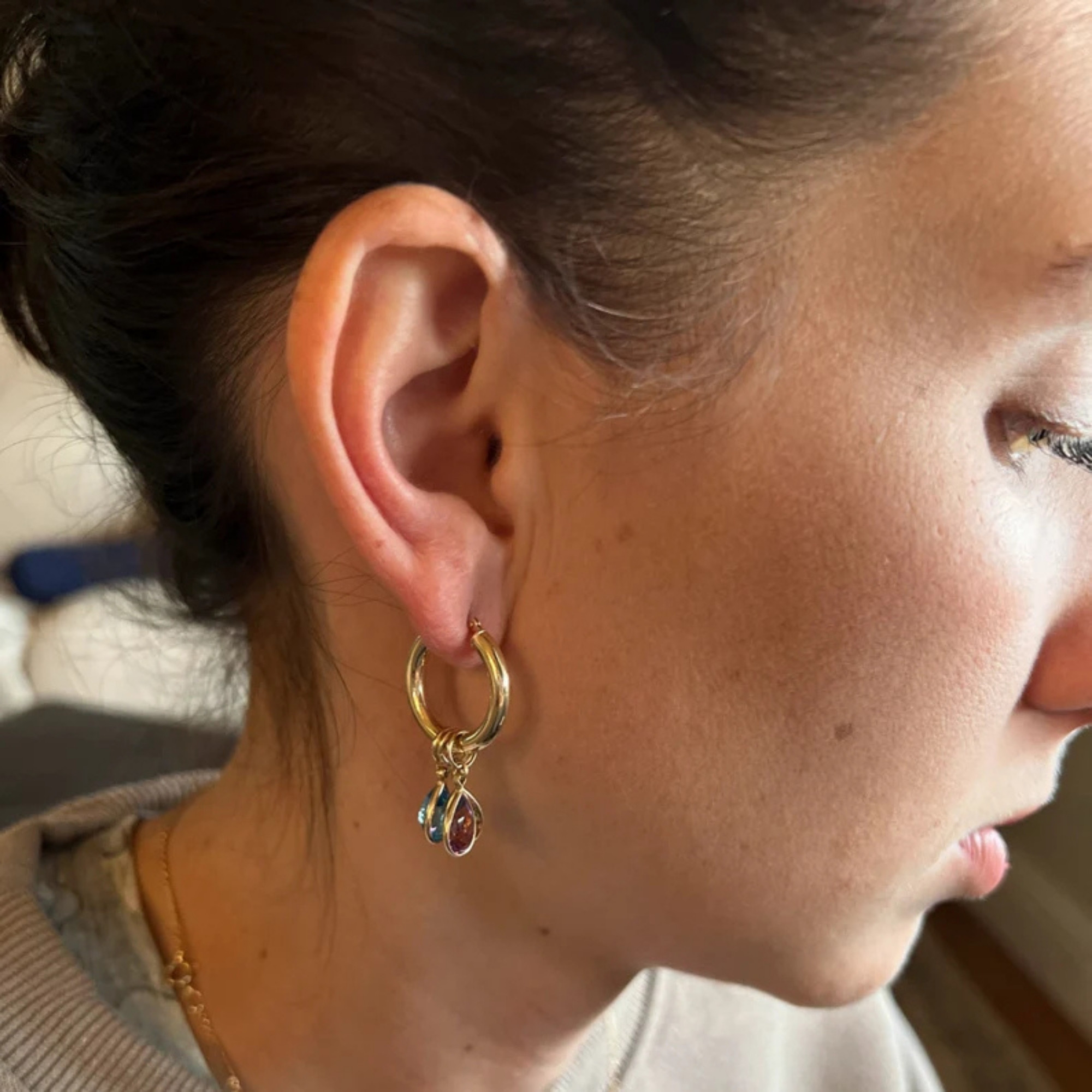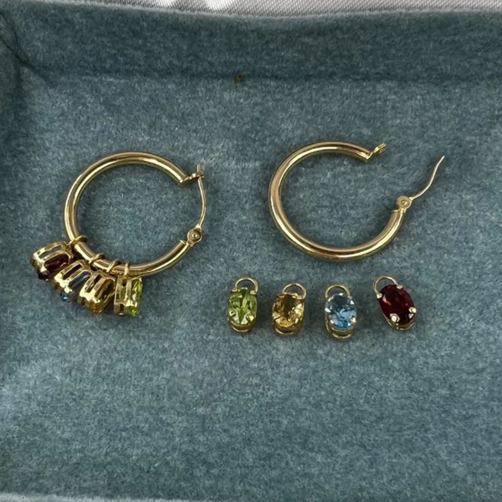 Be the first to review “Vintage Gold Hoop Charm Earrings | Citrine, Topaz & Garnet Dangles” Cancel reply