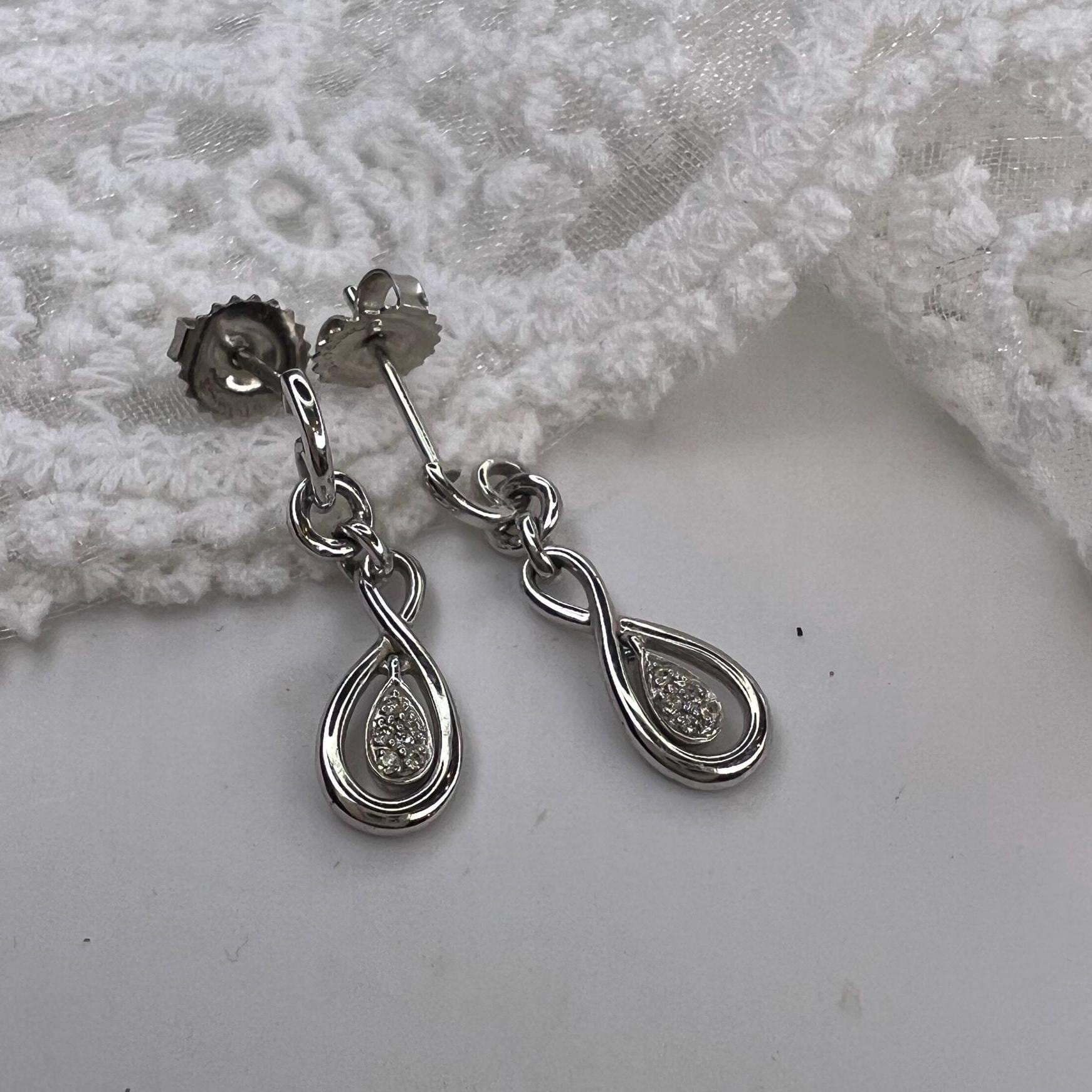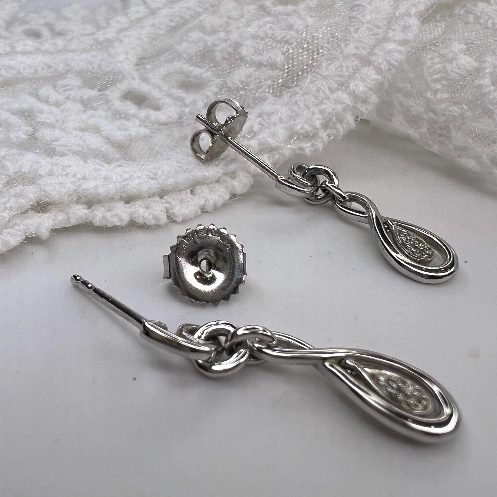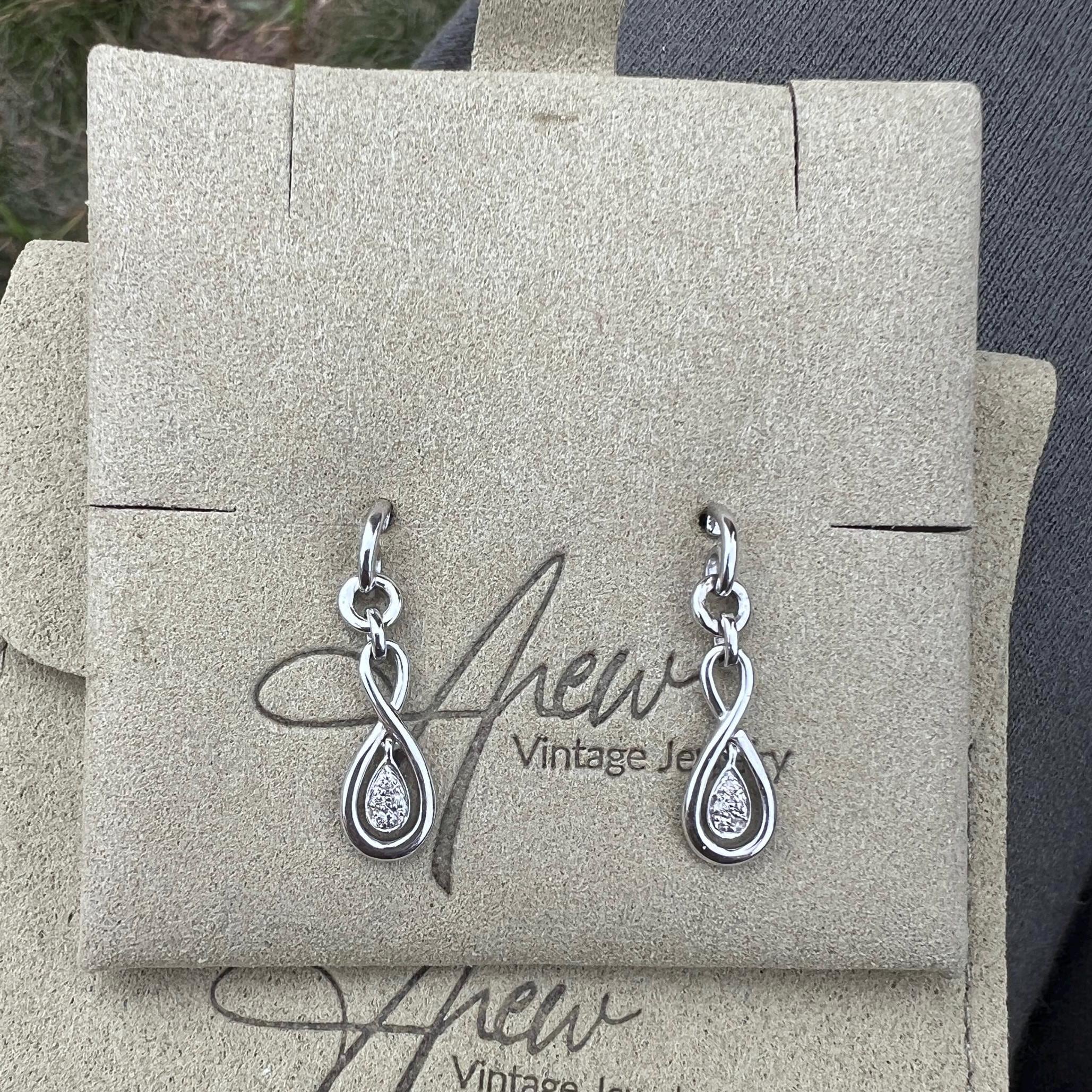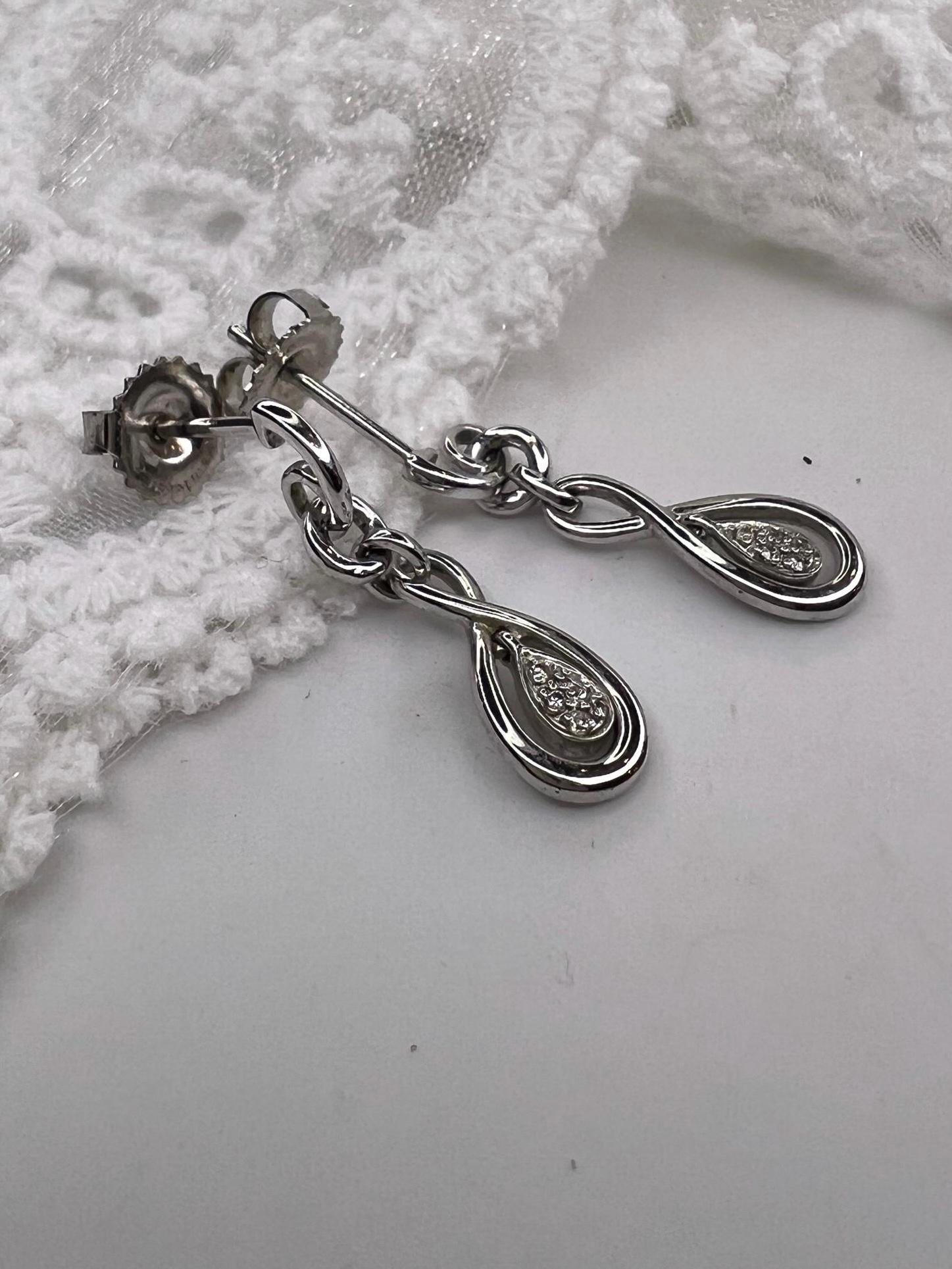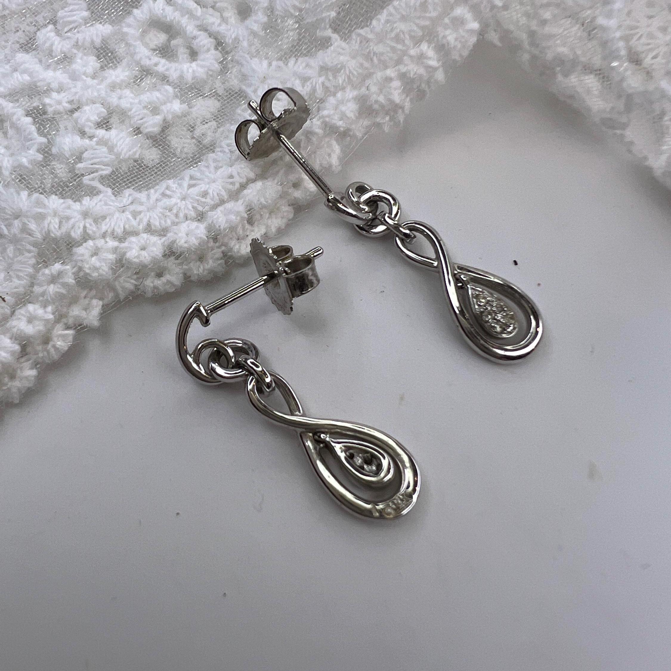 Vintage Solid 14k White Gold Diamond Dangle Earrings | Light Weight Earrings for Women 519