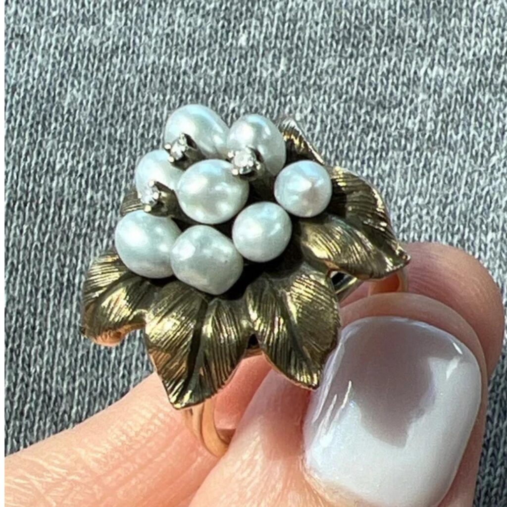 - 14k Two-Tone Pearl Cocktail Ring – A floral whisper from the 1950s